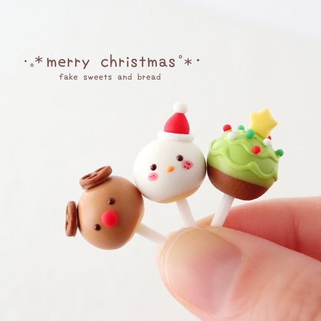 クリスマスのケーキポップスたちが かわいいチャームになりました* チャームからボールチェーンへの 変更も可能なのでクリスマスツリーの オーナメントにもおすすめです◎ 食べられないおかしなお菓子を 身につけてお出かけしてみませんか♪ ◎お好きなモチーフをお選びください。 (写真2枚目参照) ①トナカイ ②スノーマン ③ツリー ◇一点一点、心を込めて丁寧に制作していますが全て手作業の為、色味やサイズなど個々に多少の差が生じることがあります。 ハンドメイド作品ならではの風合いとしてお楽しみ頂けましたら幸いです。 ◇耐水性のあるニスで仕上げていますが完全防水ではございません。お取り扱いには充分にご注意ください。 モチーフサイズ:頭のみ約2cm(全長約3.5cm) *ピアス/イヤリングより少し大きめのモチーフになります。