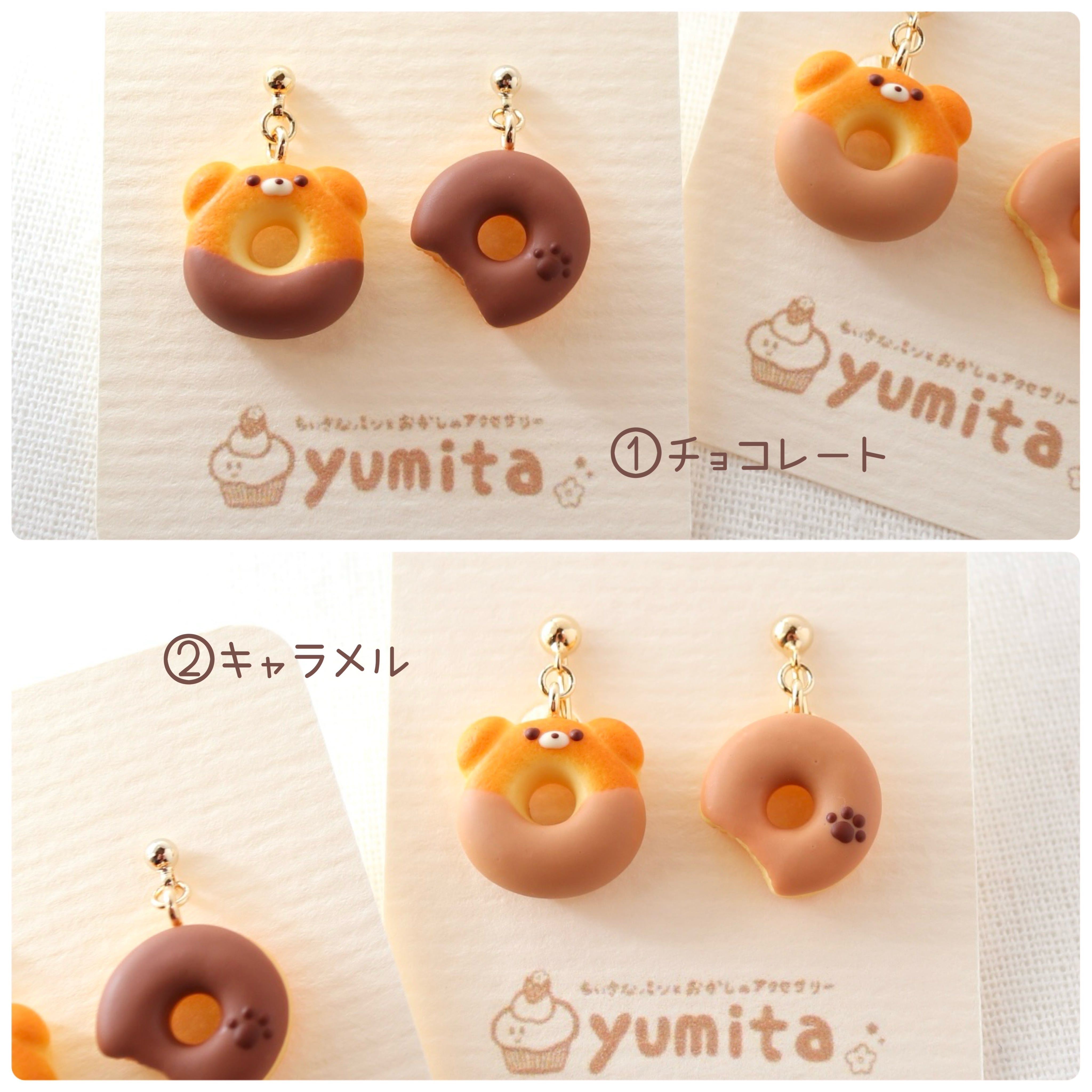 くまさんドーナツのピアス・イヤリング(チョコ・キャラメル)