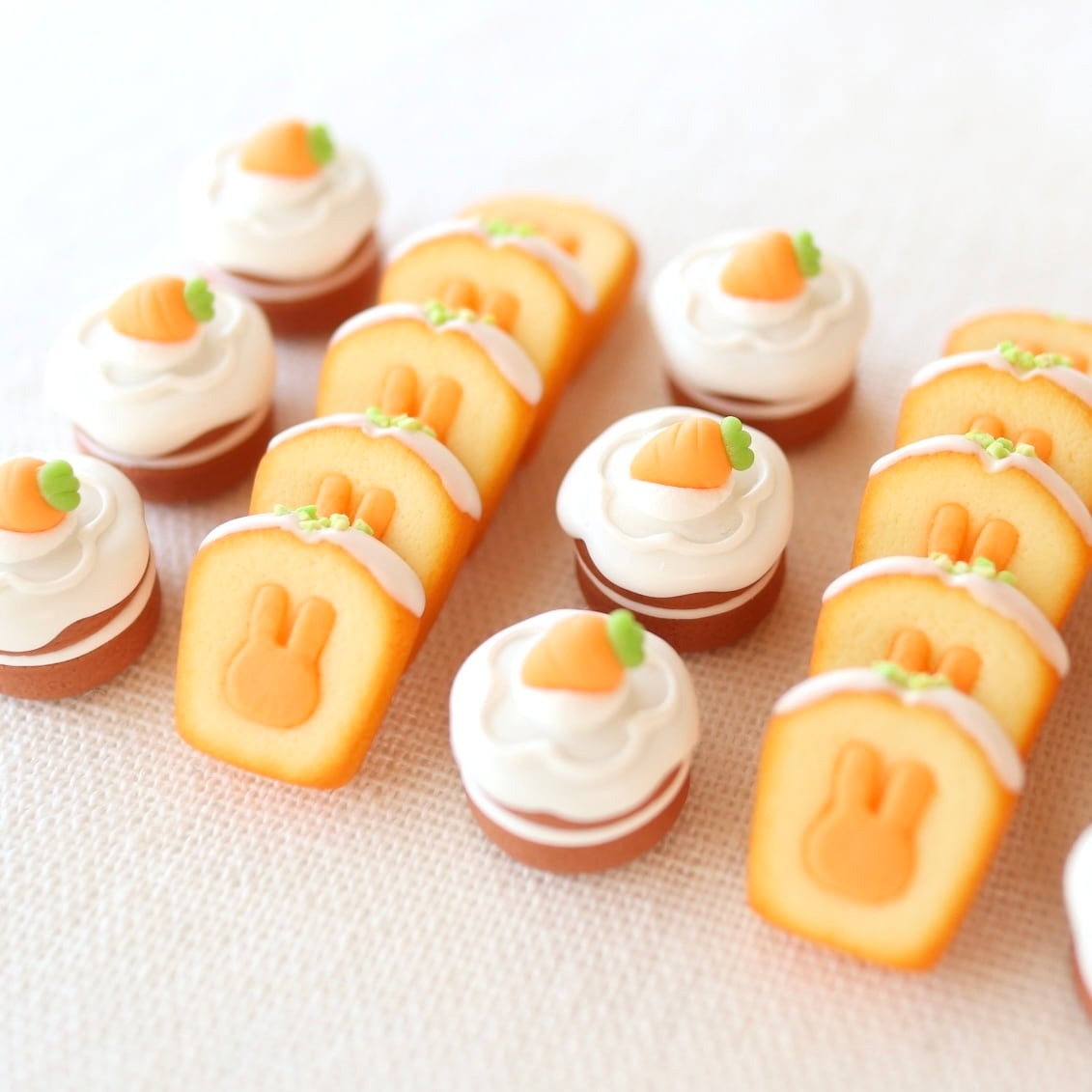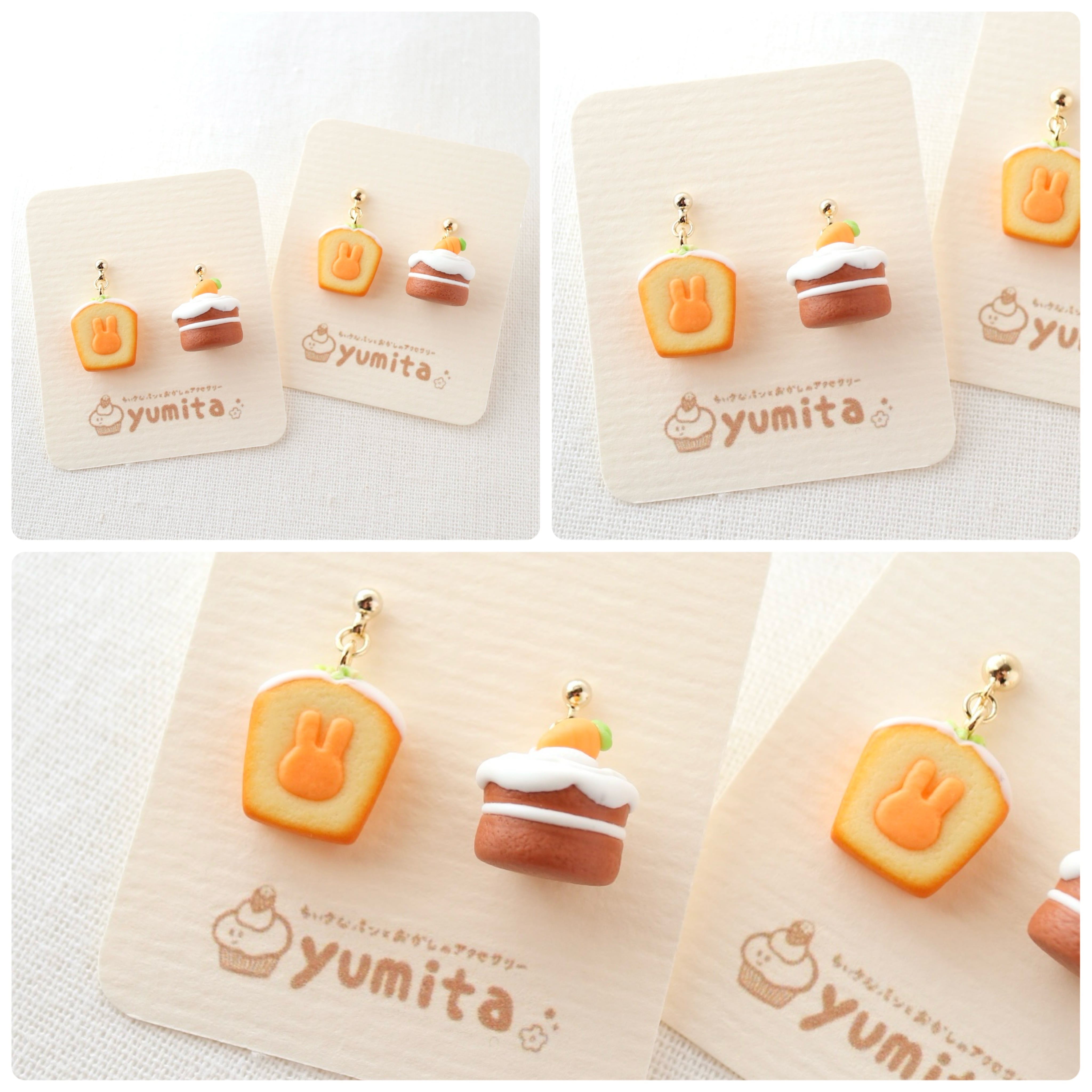 うさぎパウンドとにんじんケーキのピアス・イヤリング(チョコ・キャラメル)